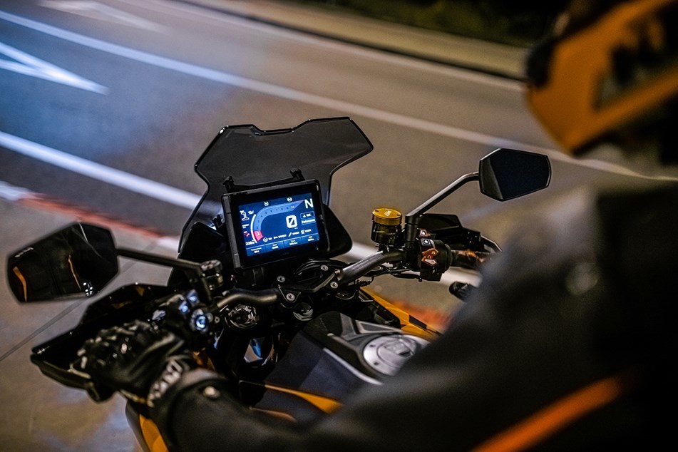 Обновление наградило байк IMU, который управляет электронными средствами для водителей, например, чувствительным к наклону контролем тяги, ABS на поворотах и сложной системой контроля устойчивости мотоцикла (MSC). Он даже обзавелся знаменитым режимом супермото KTM, который позволяет отключать на мотоцикле задний ABS для выполнения заносов и скольжений. То есть производитель благословил владельца «валить боком».