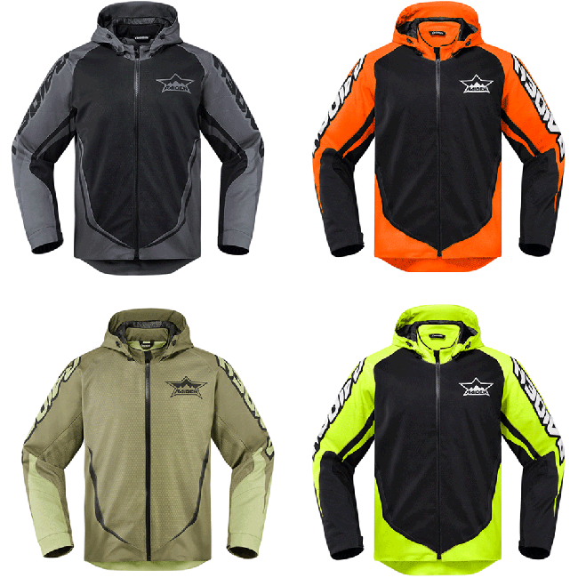 На случай, если вам прохладно в жилете или погода намекает, что куртка лишней не будет, то в Icon есть практичные мотокуртки, доступные в разных расцветках. И да, расцветка Battlescar встречалась среди них ранее. Сейчас же мы предлагаем: