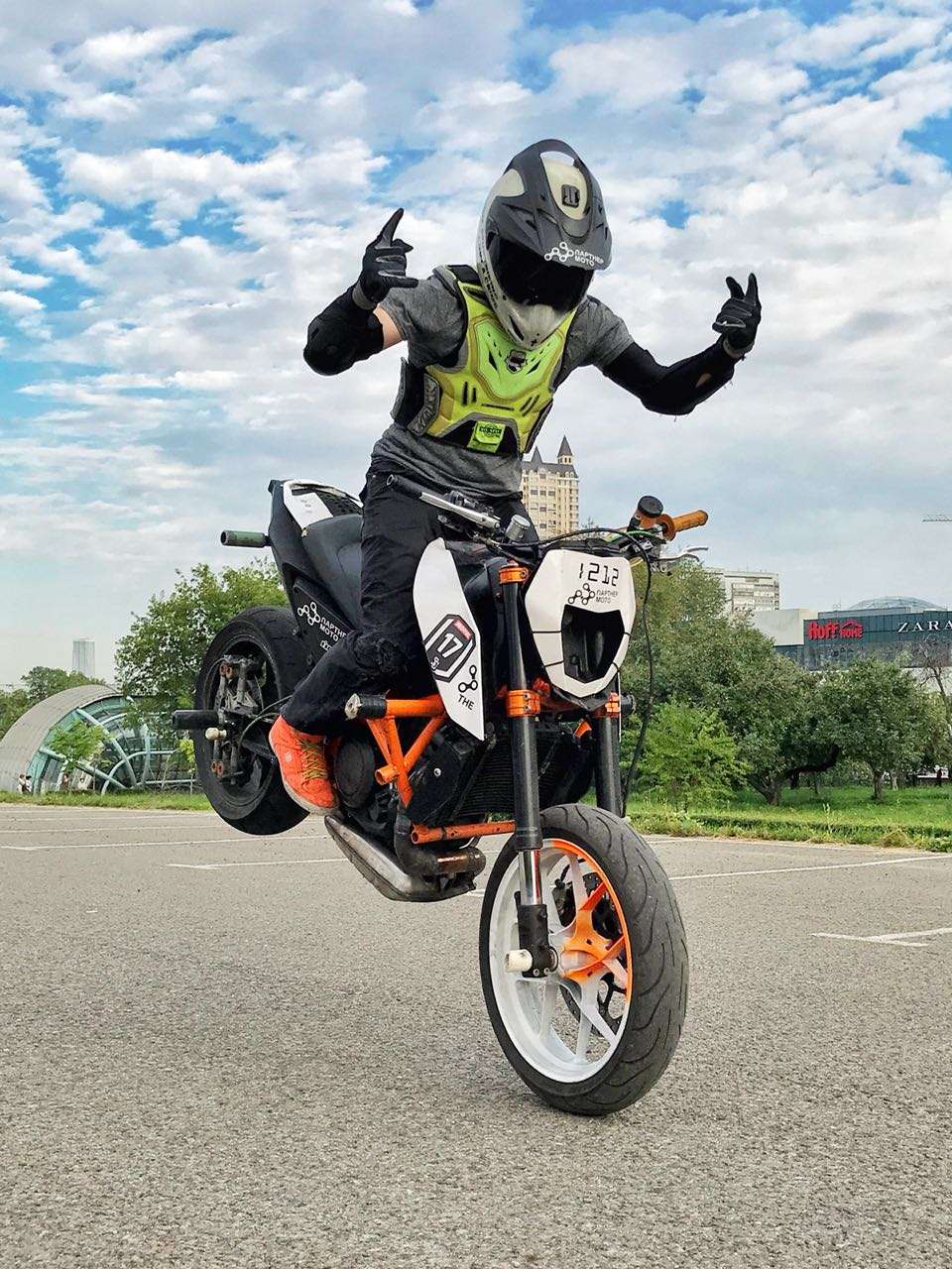 Дмитрий: Мой любимый трюк это Stoppie - езда на переднем колесе! Именно в этом трюке мне наиболее комфортно.