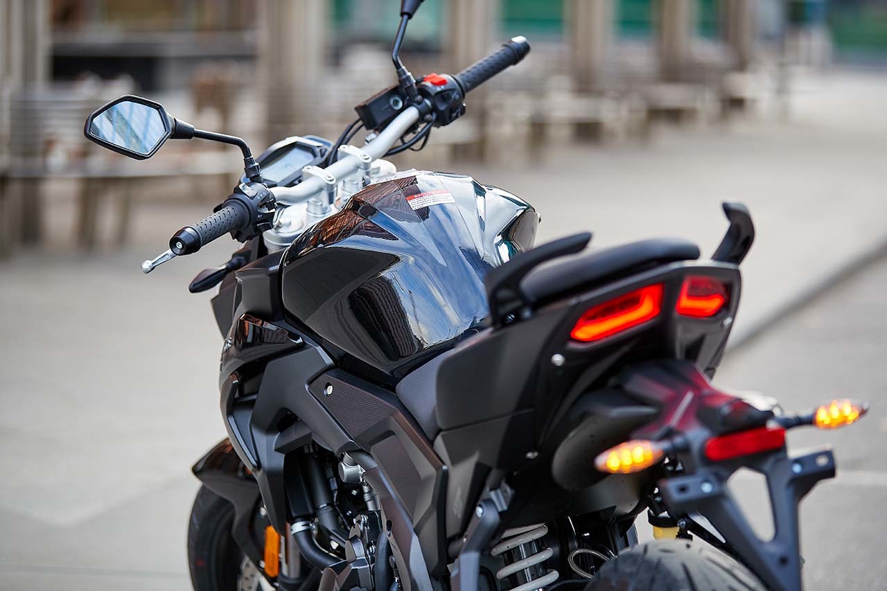 Известно, что производитель использует дорогую электронику, цифровую панель и диодную оптику. При этом тормозная система установлена от Nissin и дополняется системой ABS.