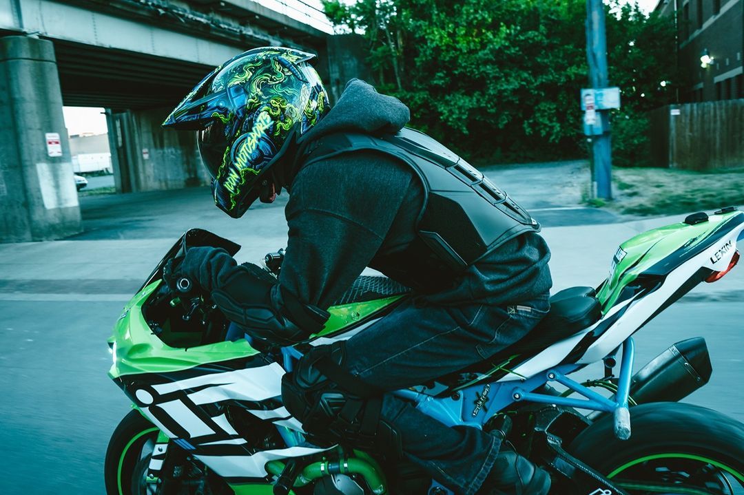Аэродинамический дизайн спойлера предотвращает задирание головы на высоких скоростях. По этой причине козырек меньшего размера, чем на моделях для мотокросса или эндуро.