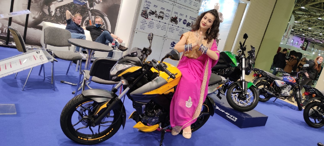 Подчеркну, что у каждого были свои изюминки и отличительные черты. Кто-то вел интерактив с отсылками к родине производителя. Например, на мотоциклах Bajaj красовались девушки в индийской одежде. Когда их фотографировали, они складывали ладони. Выглядело мило. Как не крути, а девушки в мини-бикини на мотоцикле уже заезженное клише, которым никого не удивить. А вот девушки в сари - что-то новое и привлекает внимание не только мужчин.