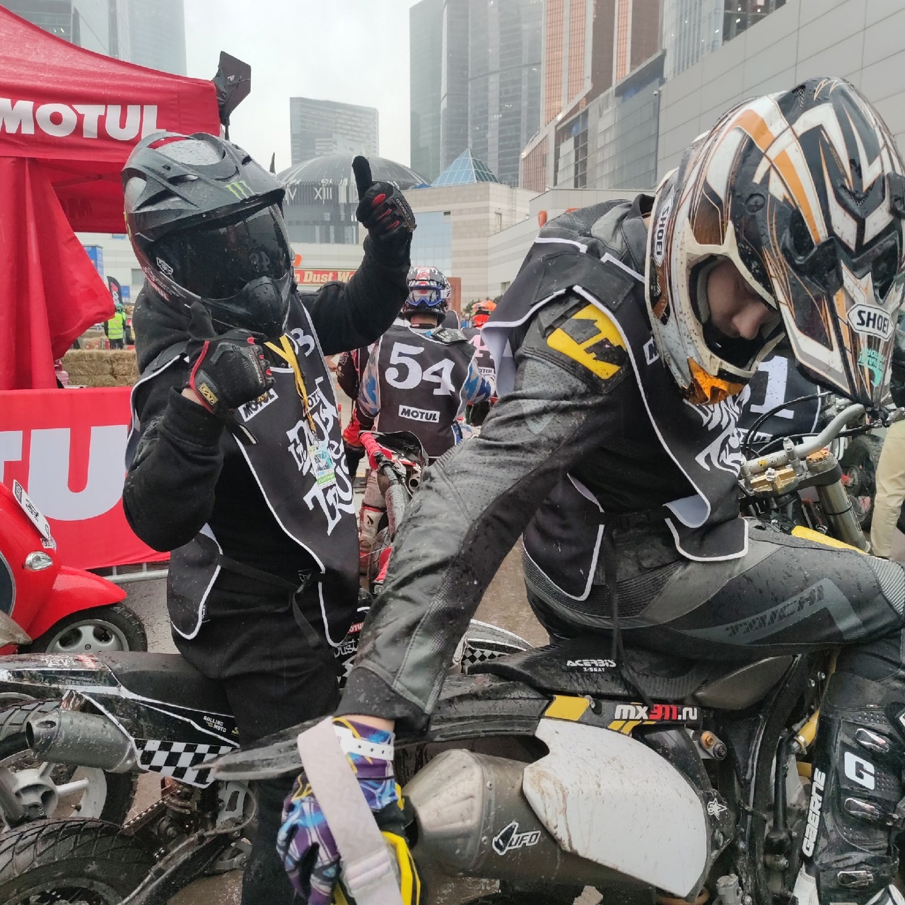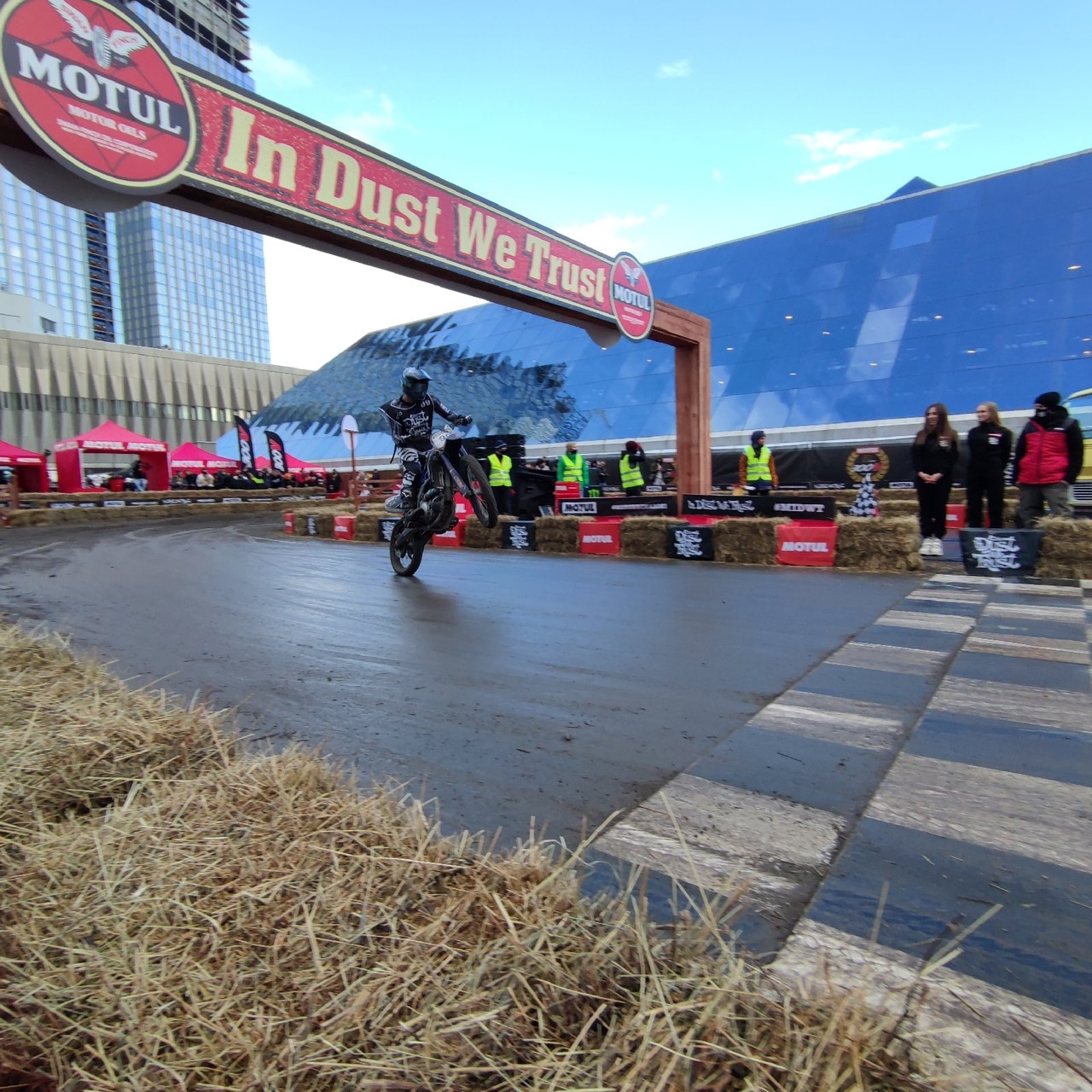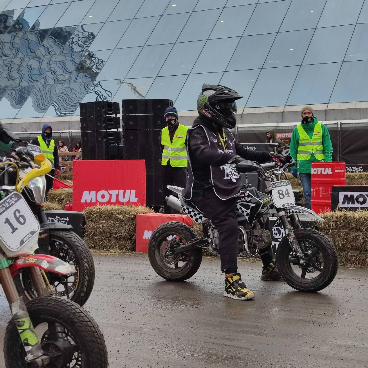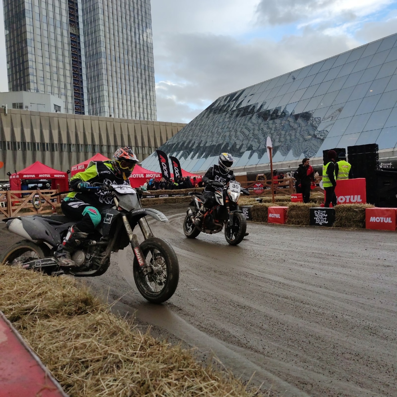 Крытым павильоном история не закончилась. Как выразились участники, грамотное использование клочка земли превратило участок в трассу соревнований флэт-трек «Motul In Dust We Trust». Каждый, кто выходил на улицу, не мог пройти мимо. Гравий, вылетающий на поворотах, звук мотора, азарт кто-кого… Искра, эмоций, сорванный голос, сотни ярких кадров и запал у зрителей. Никто не ушел без впечатлений. Каждый нашел что-то по душе.