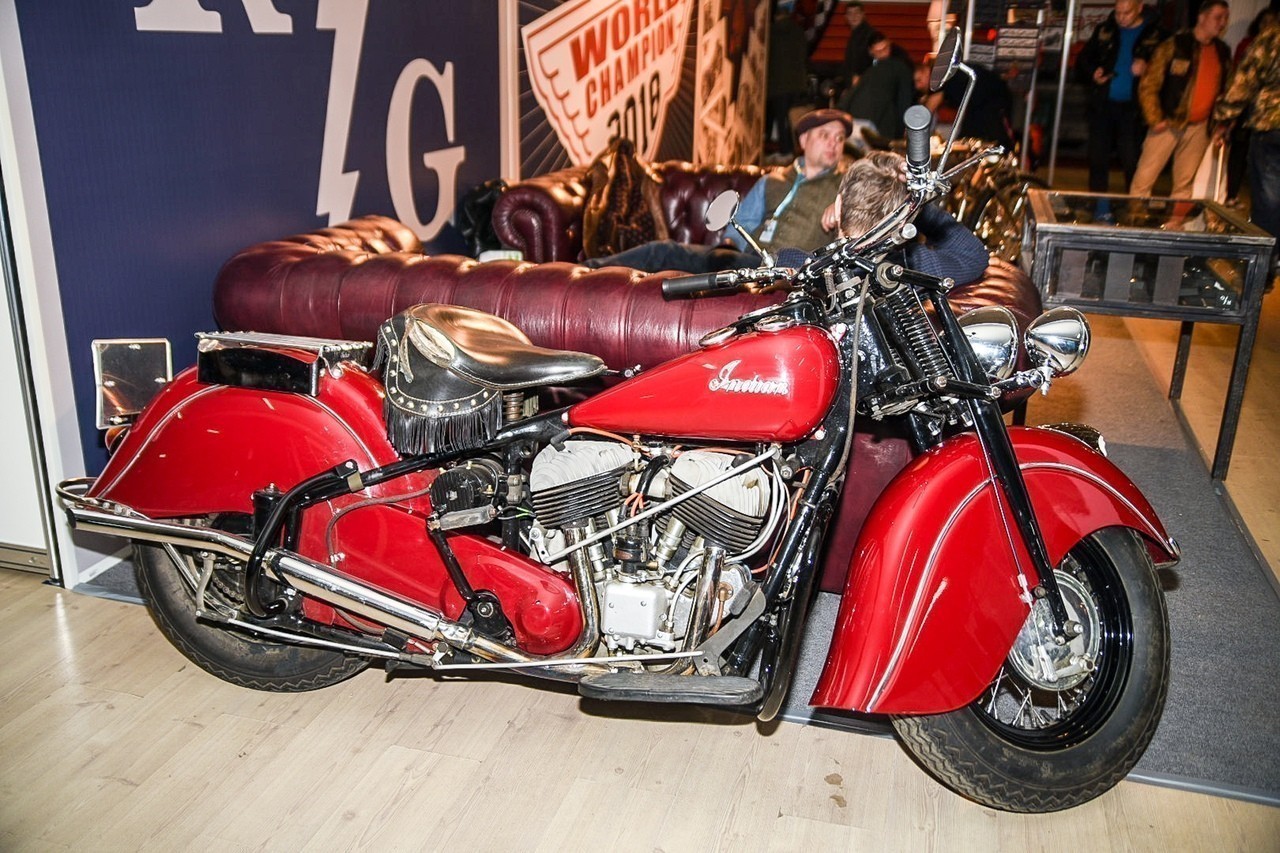 И внезапно Indian! Здесь мое личное мнение, которое конечно же обосную. Раньше Indian воспринимался как некий реликт на подобии философского камня, что-то безумно прекрасное и далекое. С момента возрождения компании об этих мотоциклах говорят возбужденно «они уже здесь, среди нас». Перед павильонами стоял микроавтобус с логотипом Indian, а того, кого привезли на этой карете можно было увидеть в зле с ретро выставкой. Нашивки Indian пользовались спросом. Пока я присматривала одну на свою куртку, кто-то уже покупал нашивки Indian, а консультант удивлялся «у вас кто-то увлекается этой маркой? Слышали, что они открыли свой салон в Москве?».