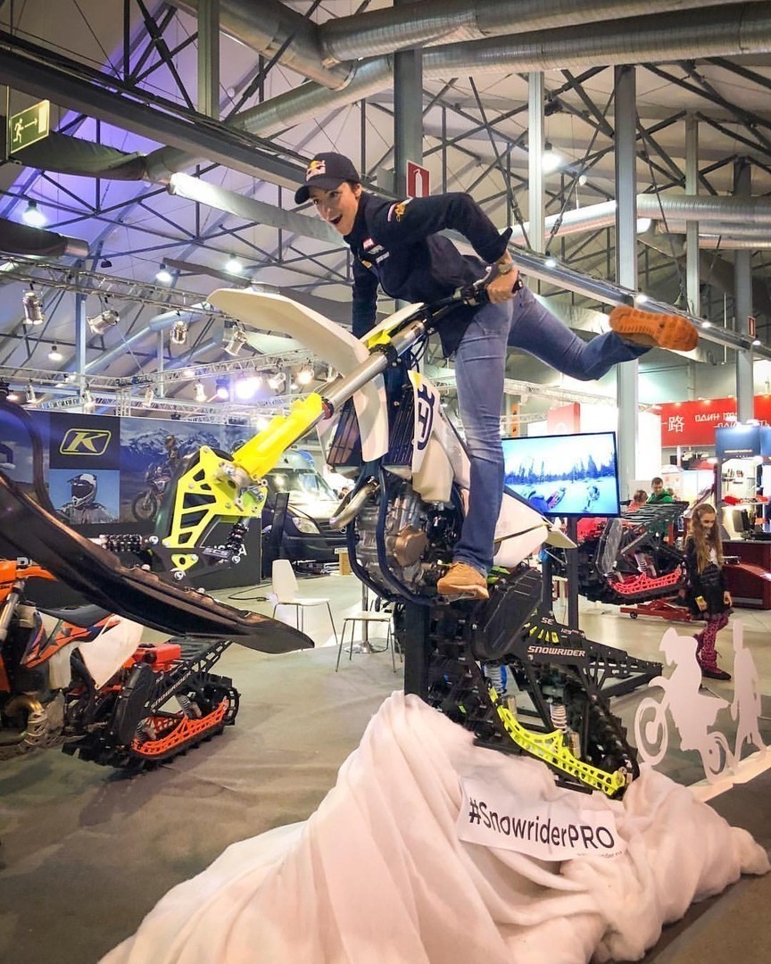 Общая идея выставки свелась к кастомайзингу и ретро. С одной стороны, цель Мотозимы вдохновлять людей на зимние подвиги, брать снегоход или ехать в снег за приключениями. С другой стороны в этот раз сама-собой появляется ностальгия по времени, когда ты мечтал собрать собственный байк или озадаченно вертел в руках паразитную шестерню от КПП, чтобы найти ей место между первичным, вторичным и промежуточным валом.