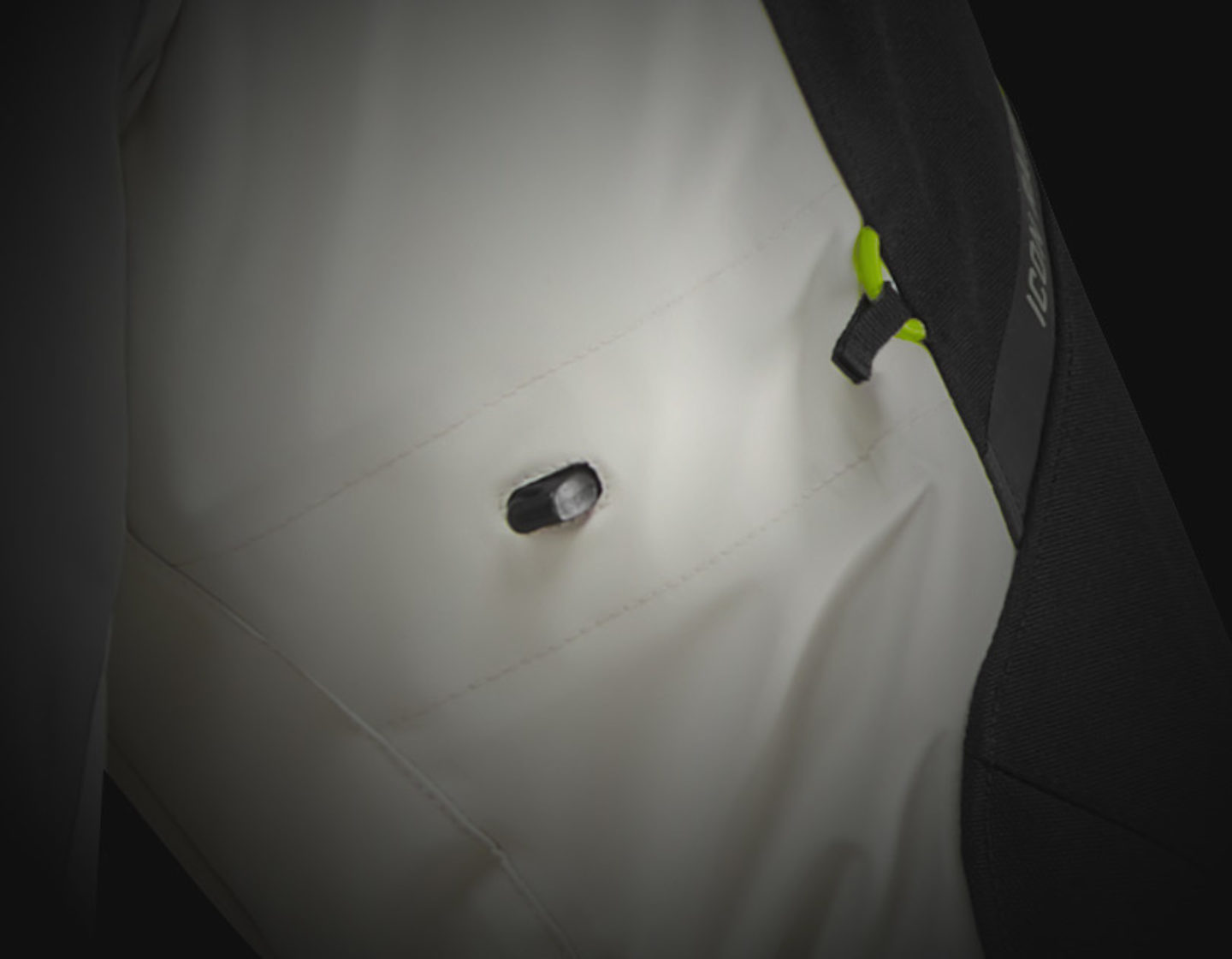 Мягкая текстильная куртка с полиуретановым покрытием, не содержит открытых вентиляционных отверстий или сеток, вместо которых вшиты молнии в подмышечных впадинах. За счет этого куртка выдерживает легкий дождь и не теряет в уровне вентиляции.