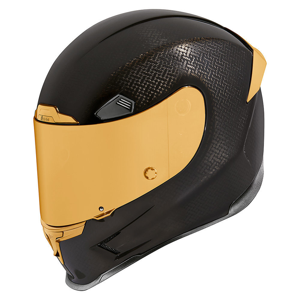 Вариант для тех, кто знает о преимуществах карбона. Его фактура заменяет любые дизайнерские рисунки, карбоновое плетение ICON 4Tress™ настоящее украшение. Лаконичный дизайн дополняется красивым красным визором Icon Optics™ и спойлером Tracshield™ или золотым исполнением визора и спойлера.