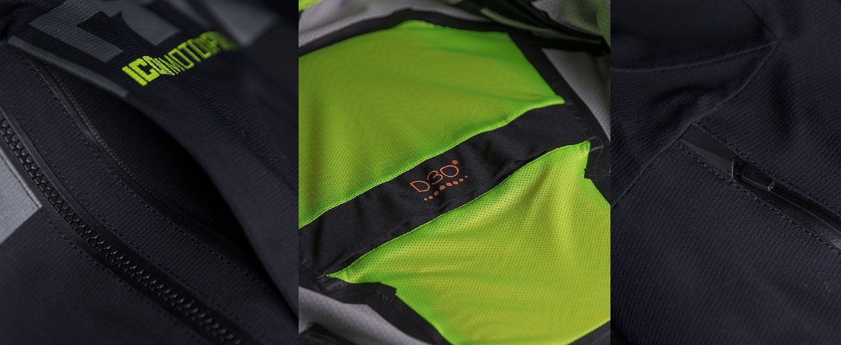 Куртки доступны в двух цветах, но обе выполнены из четырехполосного эластичного водонепроницаемого дышащего материала HYCOR. Дополнительной защитой от влаги послужат проклеенные швы. В Icon стремятся позаботятся о комфорте мотоциклиста в любую погоду, а в дождь это актуально, как никогда. Устойчивость к осадкам должна сохранить тело сухим в умеренных осадках.