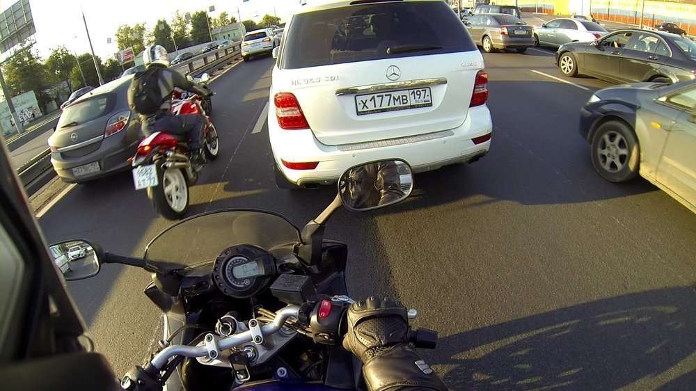 Первое, что бросается в глаза при попадании в трафик - поведение автомобилистов. Автолюбители за зиму так разнежились, что никто больше не шныряет между рядами, что просто не желают смотреть по зеркалам, дергаются, при звуке выхлопа или едут как короли, как будто малогабаритного транспорта в мире и не существовало в принципе никогда.