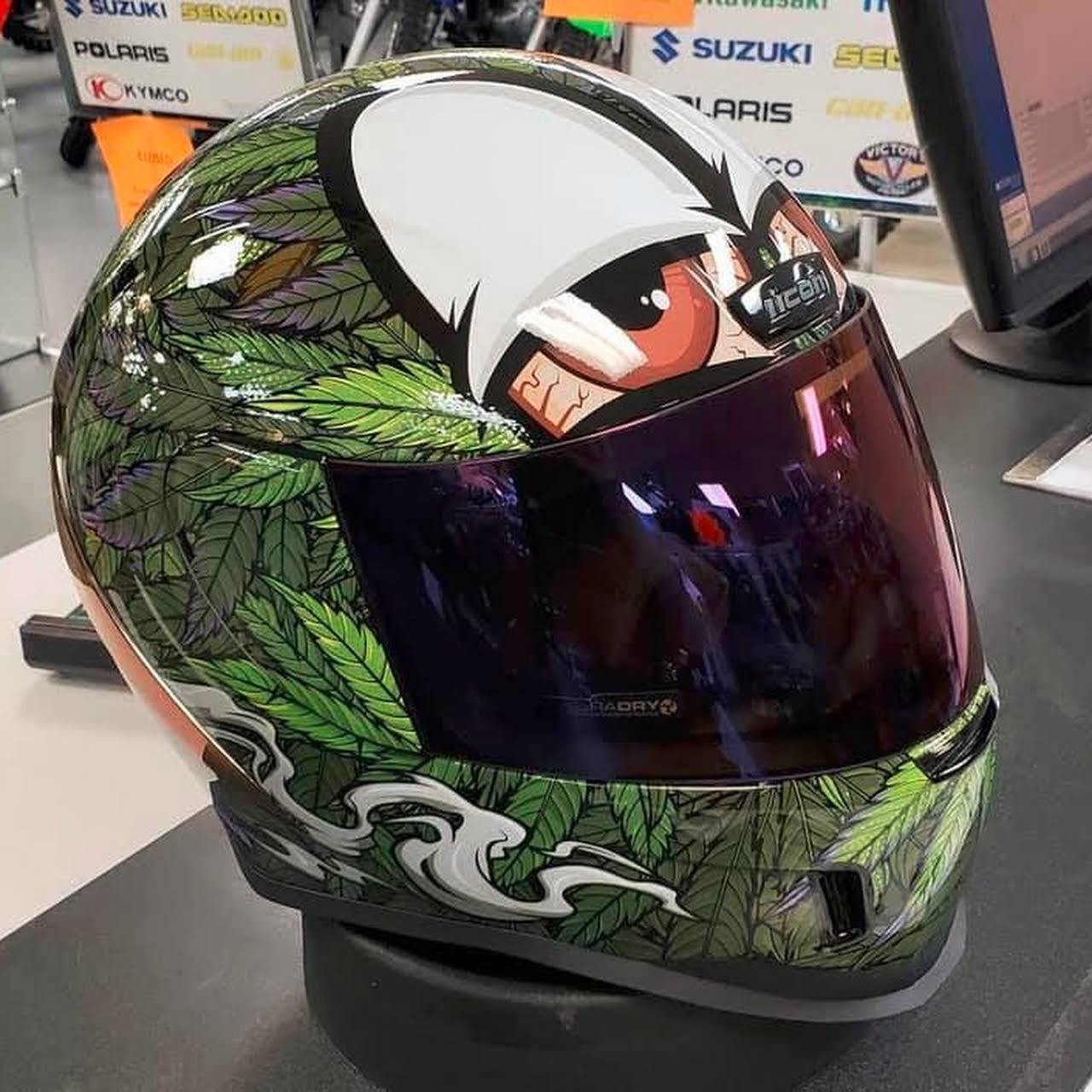 Компания Icon старается удивлять мотоциклистов и с каждым разом предлагает умопомрачительные новинки. Глядя на новый шлем Airform RiteMind, появляются смешанные чувства, порождаемые, прежде всего, раскраской. Кто-то в восторге, кто-то удивлен, для кого-то это слишком смело... Не знаю как вы, а я сразу вспомнила «Страх и ненависть в Лас-Вегасе»: «У нас было два мешка травы, 75 таблеток…» (за дальнейшую цитату можно получить нагоняй по цензуре, но, думаю, вы и так прекрасно помните по книге и фильму сюжет). В общем… «мы были на краю пустыни, когда нас начало накрывать».