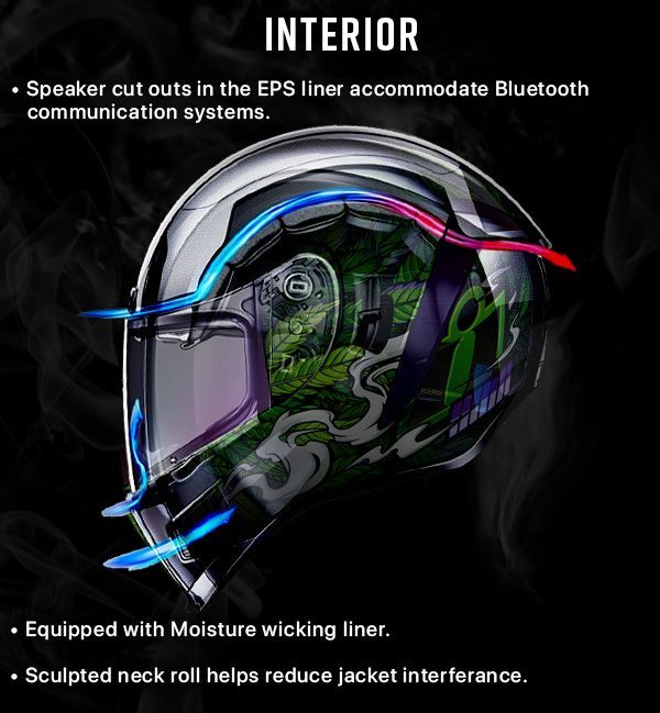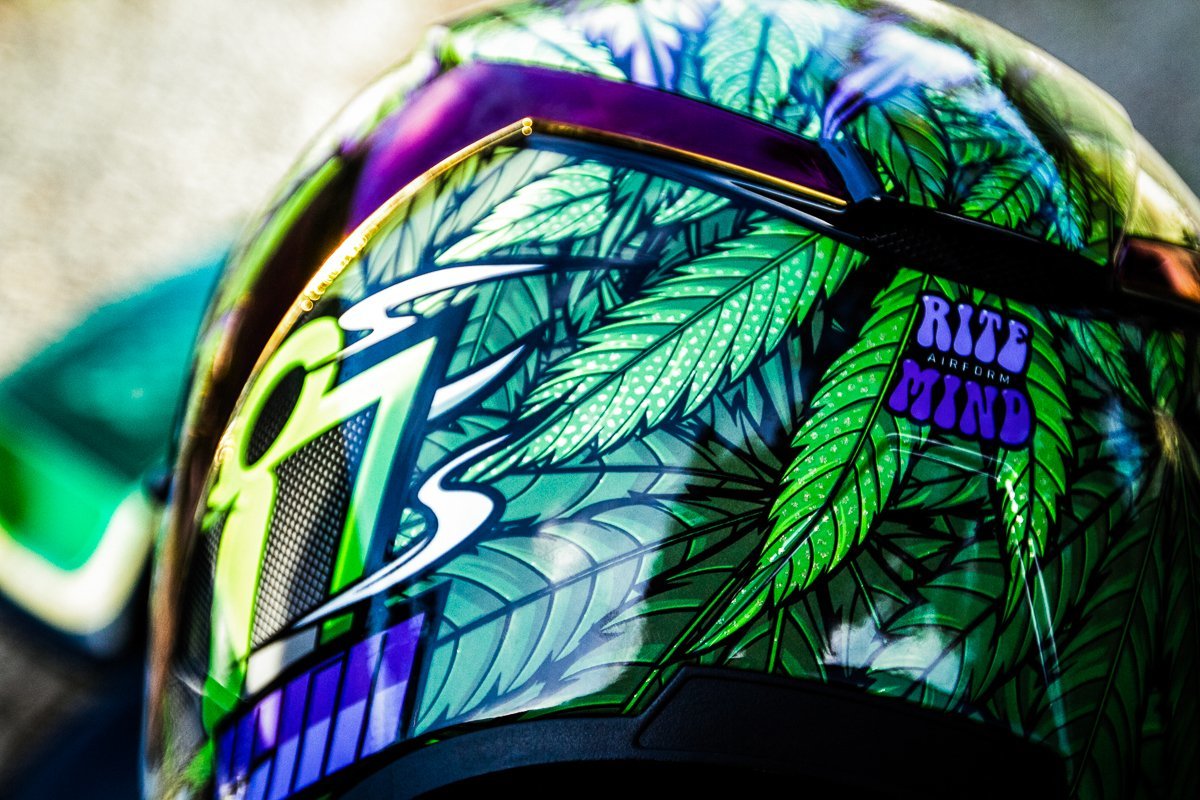 Пока дизайн призывает мотоциклистов открыть разум и не переживать ни о чем, можно присмотреться к особенностям шлема. Под рисунком скрывается корпус Airform, поэтому оригинальный вид не главное преимущество этого мотошлема.