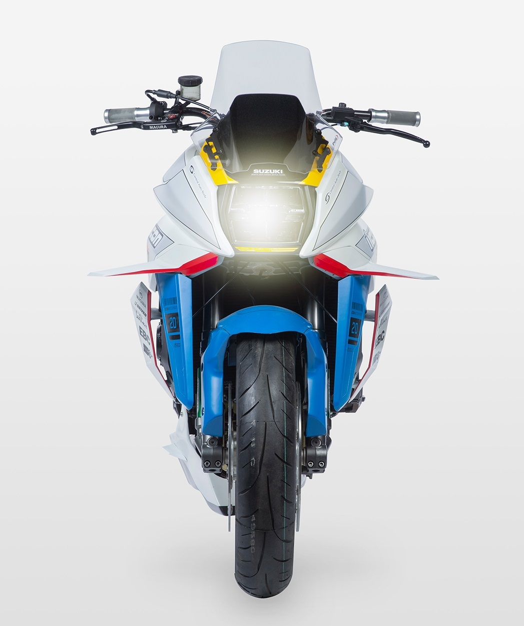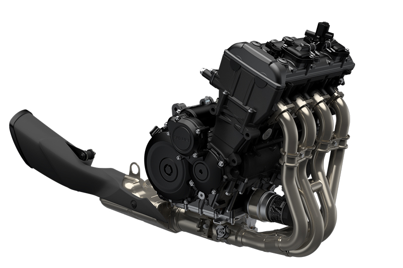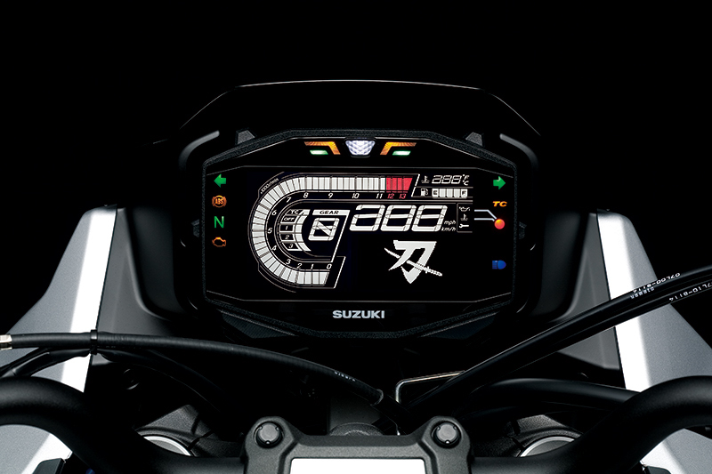 Силовой аппарат расположен чуть ниже, что стабилизирует мотоцикл в движении. Выхлопная система 4 в 2 в 1 создана из нержавеющей стали для меньшего шума при выбросе газов из двигателя. В середине трубы находится клапан Suzuki Exhaust Tuning, он контролирует поток в катализатор и выхлопную камеру, чтобы сбалансировать производительность и контроль выбросов.
