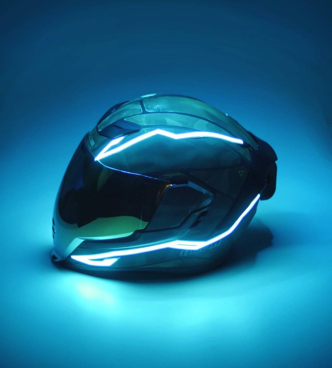 Фанаты однотонных окрасов могут использовать внешние электролюминесцентные светящиеся элементы – стильно и инновационно. Заряжались бы еще сами… от солнышка… Тем не менее поклонники у таких украшений есть. На шлемах Icon электролюминесцентные дополнения выглядят достойно!