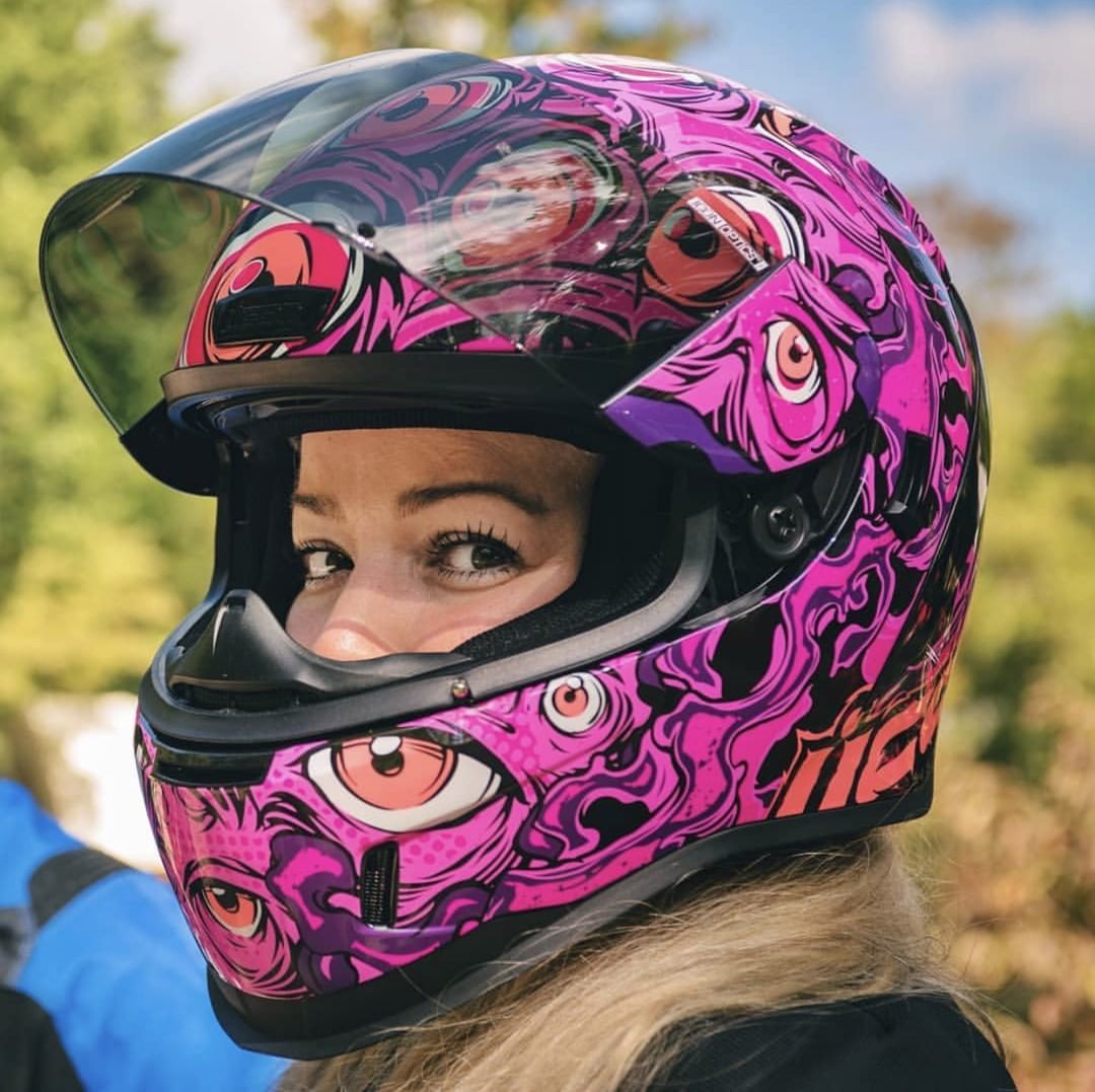 Это ты смотришь на него или он на тебя? Мотошлем, доступен в двух эпатажных раскрасках – зеленой и розовой. Удобный и функциональный интеграл имеет поликарбонатную оболочку. Пользователя порадует съемная подкладка из быстросохнущего материала Hydradry и встроенные солнцезащитные очки. Визор предоставляется с защитой от запотевания и системой Prolock.