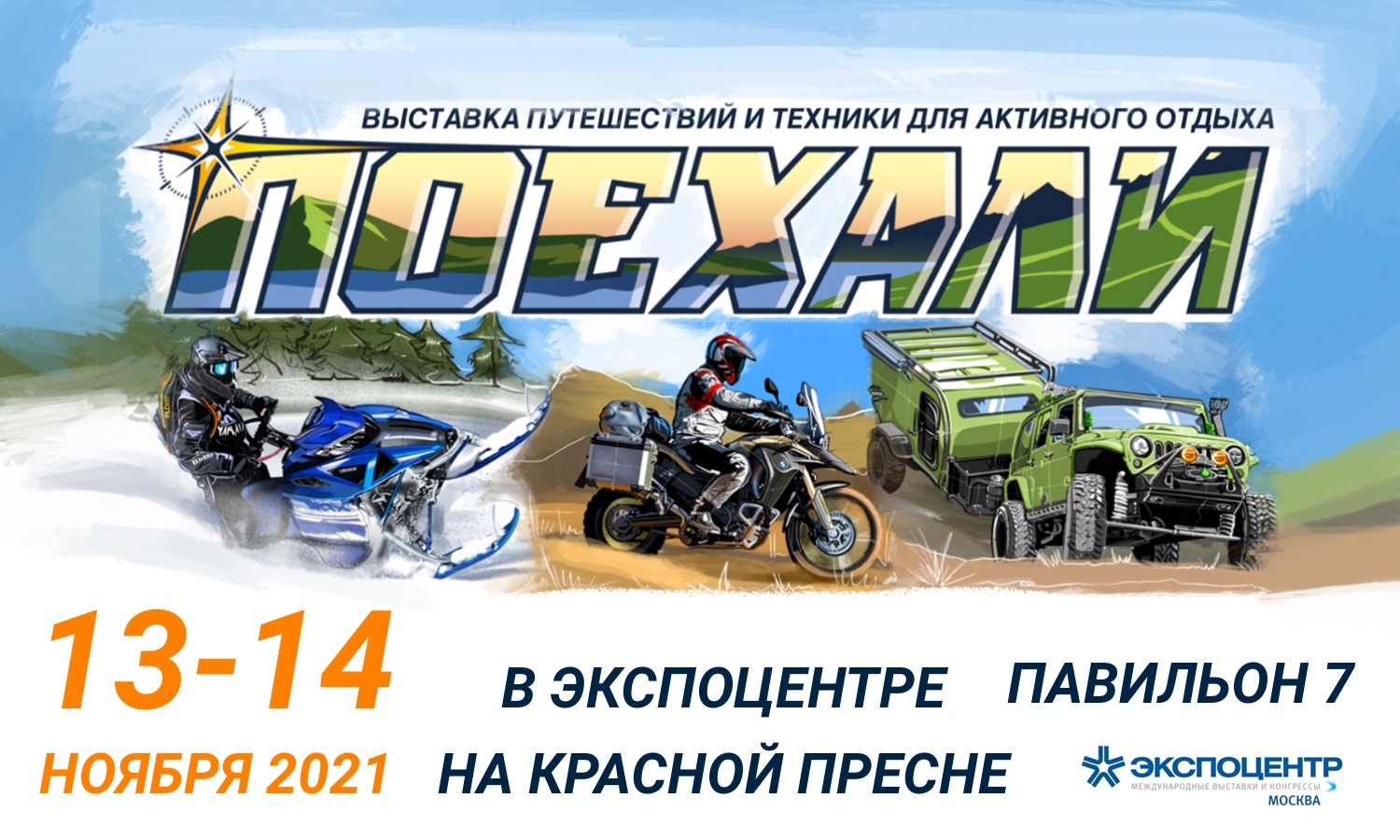 Ранее на правах информационных партнеров мы приглашали всех желающих посетить главное туристическое событие осени - техническую выставку «Поехали 2021». Выставка должна была пройти 4-5 ноября 2021 года, но ее перенесли на 13-14 ноября 2021.