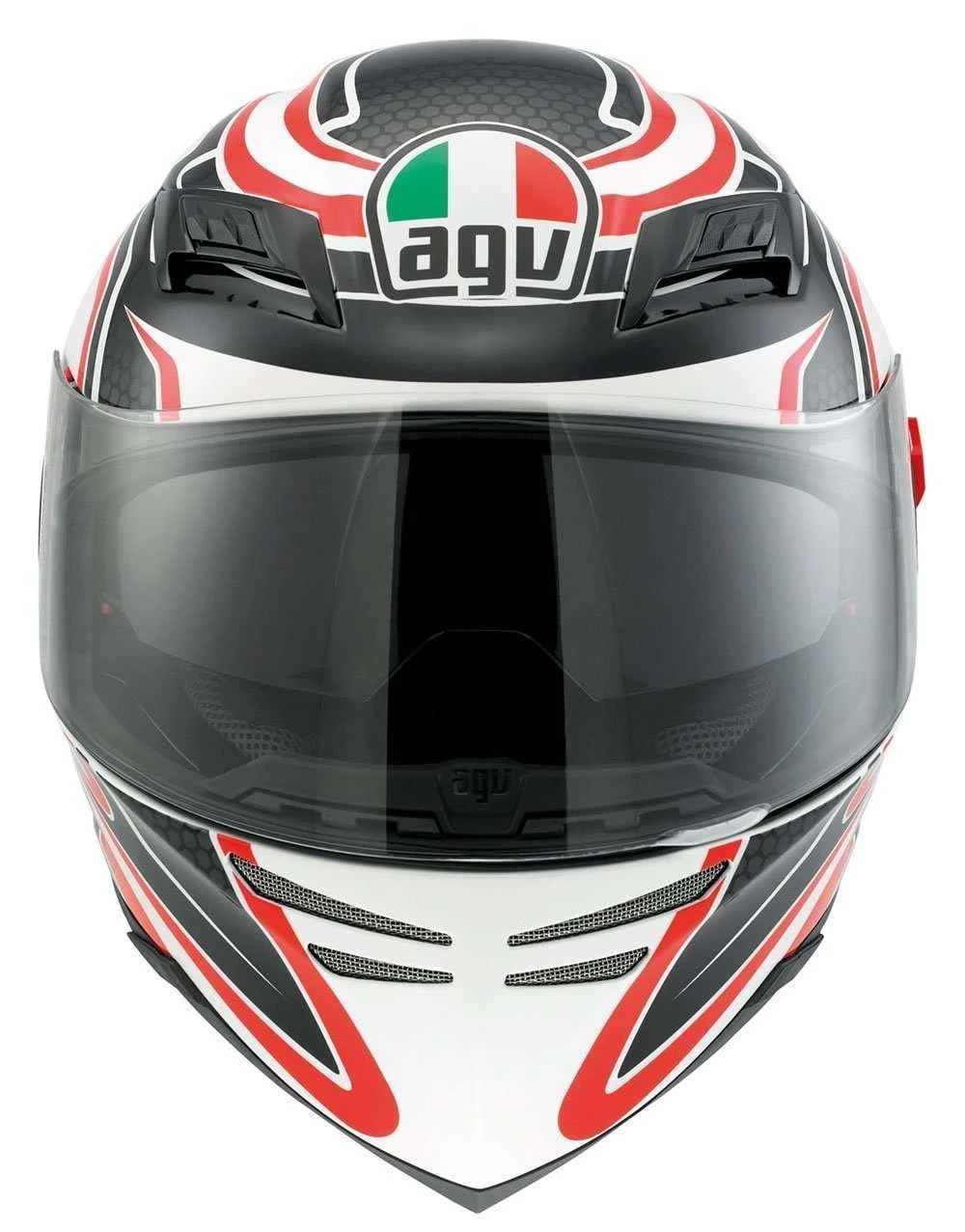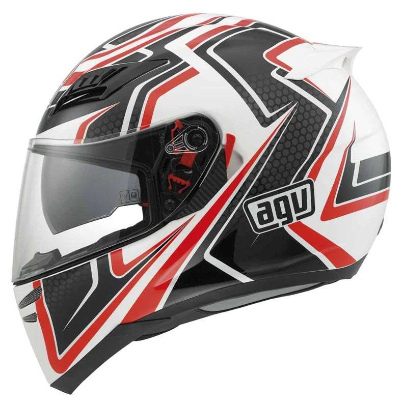Horizon Racer от компании AGV относится к шлемам типа интеграл. Он может использоваться как для обычных поездок на спортбайке, так и для участия в спортивных соревнованиях практически любого типа, ведь обеспечивает самый высокий уровень защиты мотоциклиста. Помимо отличных эксплуатационных характеристик в этой модели стоит отметить оригинальную и стильную графику, сочетающую в себе белые и красные элементы с расцветкой «карбон».