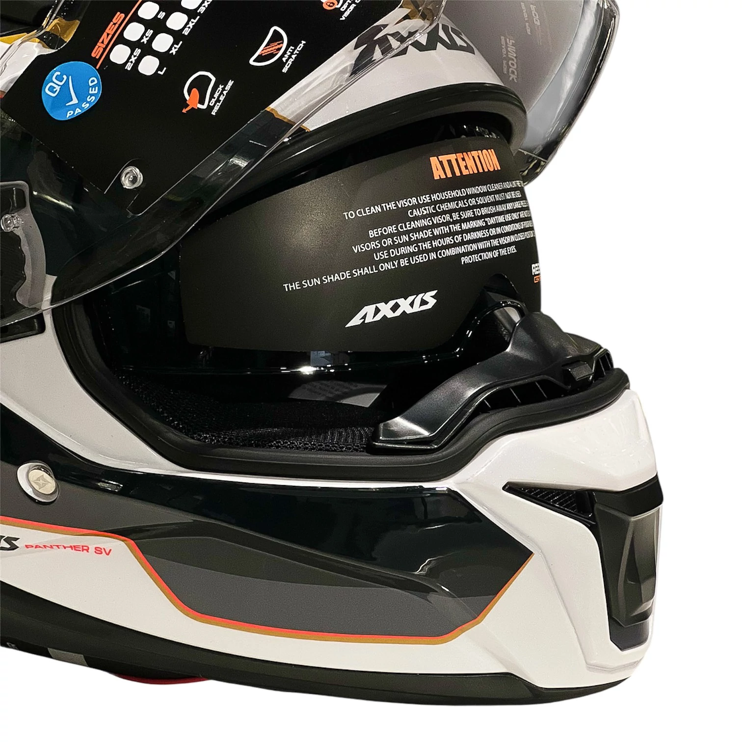 AXXIS FF130SV Panther - прочный и стильный мотошлем с солнцезащитным визором от Испанского бренда. Мотошлем соответствует новейшему стандарту сертификации ECE 22.06 (Европа). Визор имеет подготовку под пинлок и специальное покрытие против царапин. Внутренние подушки имеют съемную, моющуюся гипоаллергенную подкладку Exo Linning.