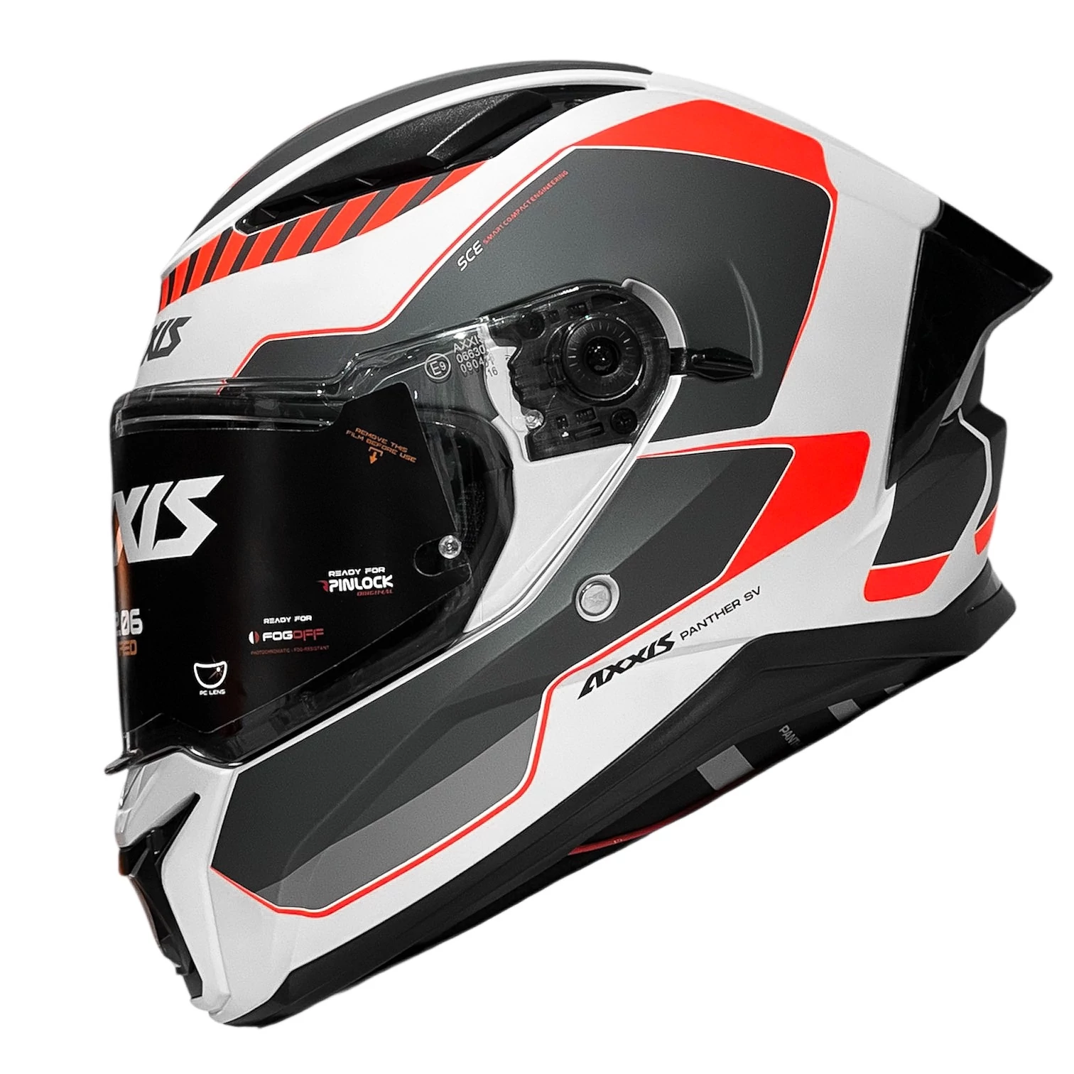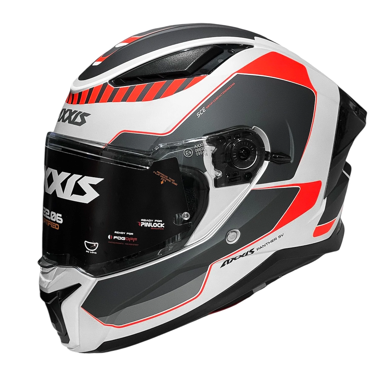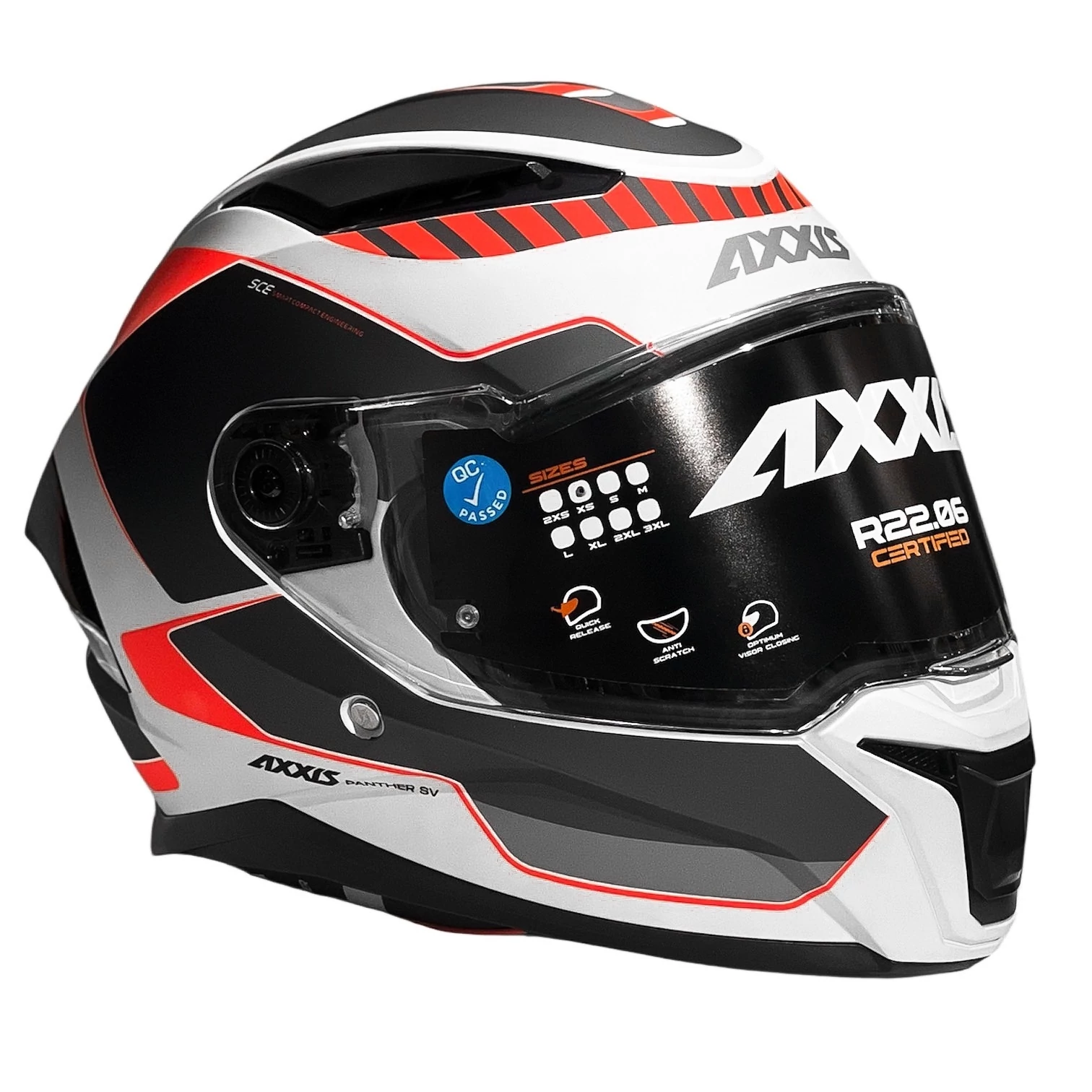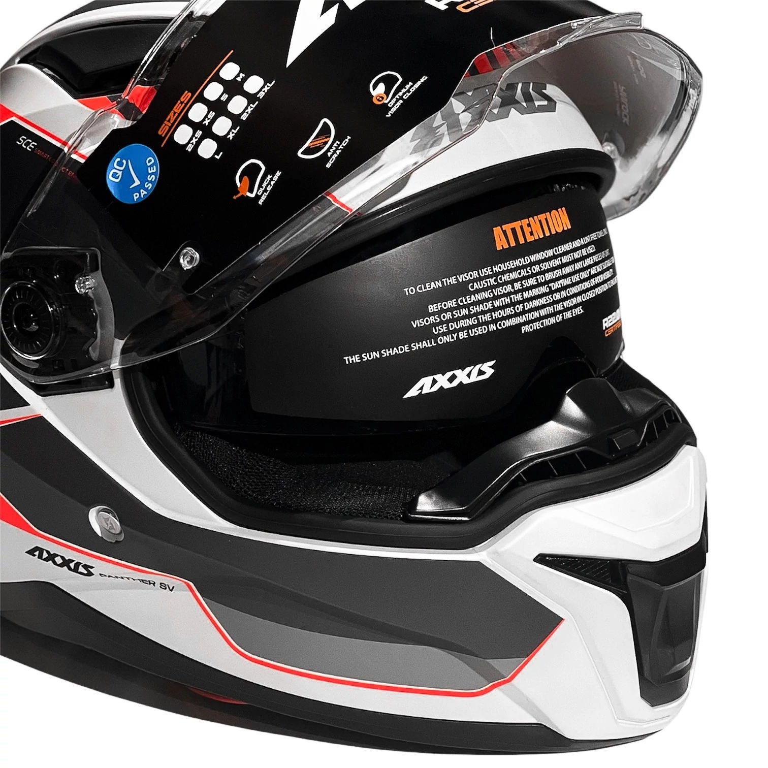 AXXIS FF130SV Panther - прочный и стильный мотошлем с солнцезащитным визором от Испанского бренда. Мотошлем соответствует новейшему стандарту сертификации ECE 22.06 (Европа). Визор имеет подготовку под пинлок и специальное покрытие против царапин. Внутренние подушки имеют съемную, моющуюся гипоаллергенную подкладку Exo Linning.