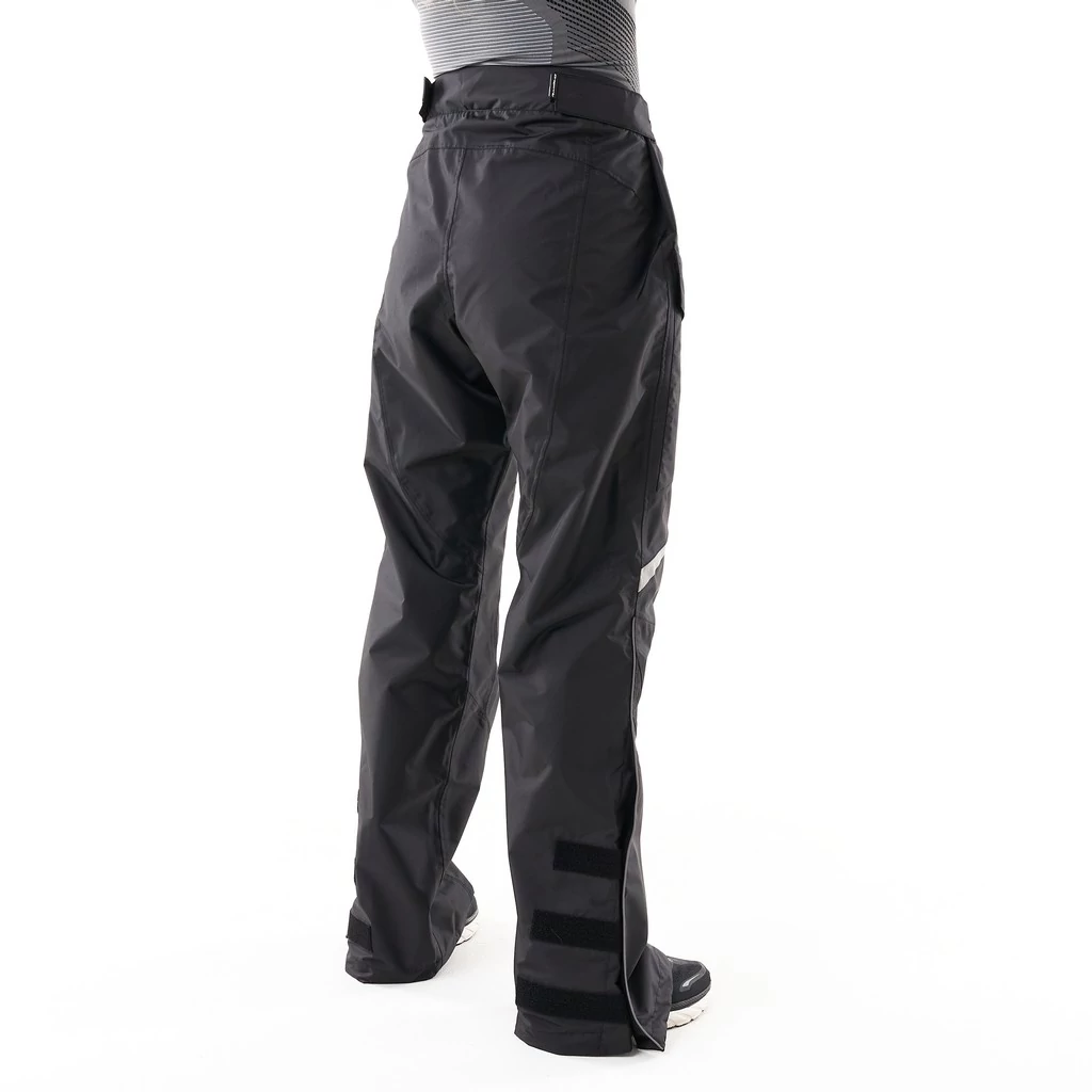 Непромокаемые штаны EVO надеваются на одежду или экипировку, низ расширен для надевания на обувь. Сшиты из водонепроницаемой и ветрозащитной мембранной ткани (плотность 165 г/м², 100% полиэстер, показатели мембраны 20 000/ 20 000 (вода/пар), влагозащитное покрытие DWR). За счет гибкости и легкости ткани дождевые брюки не стесняют движений. Все швы проклеены: изделие полностью герметично. Эргономичный дизайн учитывает все особенности посадки и езды с большой скоростью. Надежно защищают от ветра, пыли, дождя, грязи, обеспечивая комфорт в период непогоды. Благодаря мембране материал отводит влагу от тела, не давая конденсату скапливаться на внутренней поверхности.