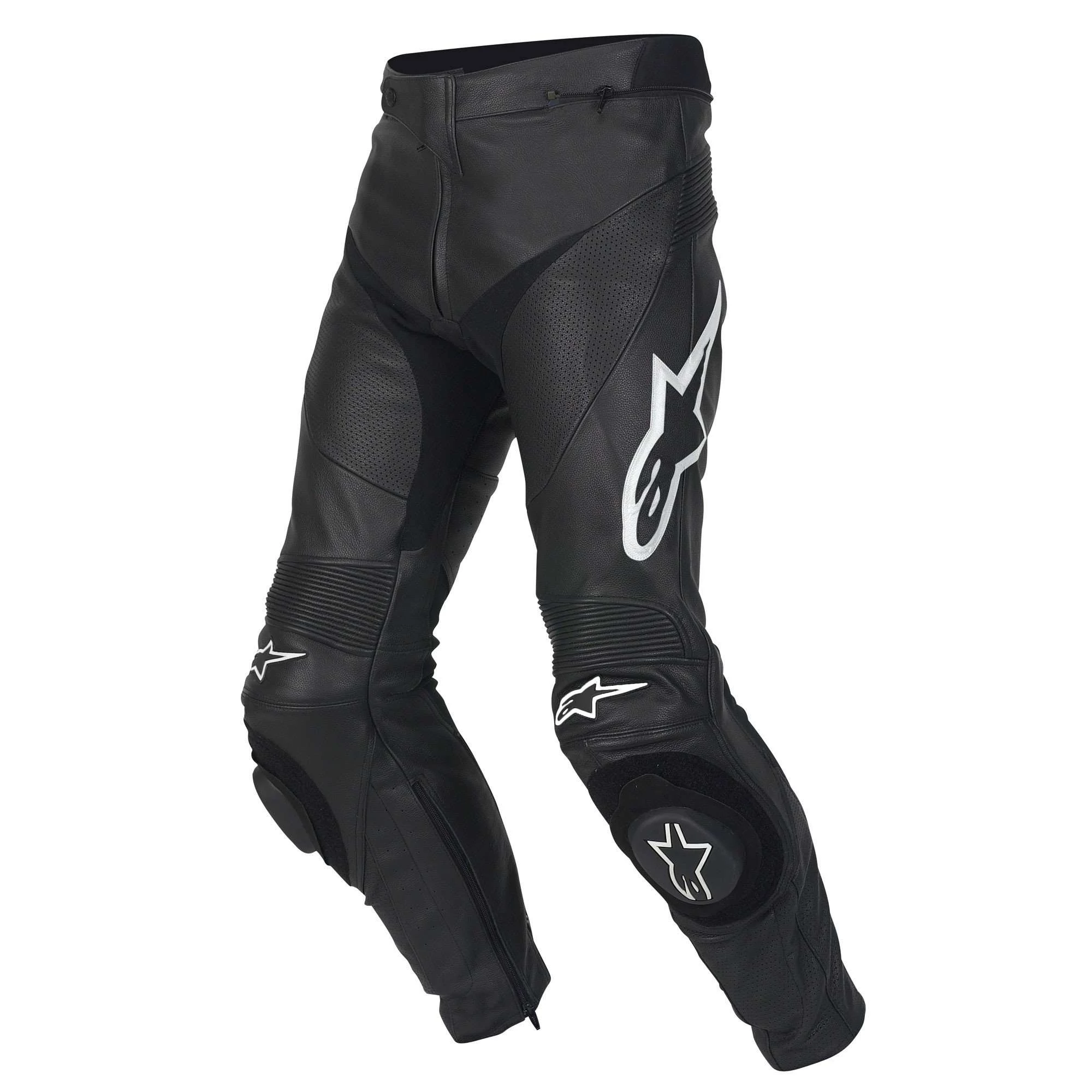 Черные мотобрюки Alpinestars Track – достойный пример эргономичного дизайна, комфорта и безопасности высокого уровня. Как и предыдущие модели Alpinestars , Track изготовлены по современным технологиям на базе высокопрочных материалов. Для основы использована перфорированная, крупнозернистая кожа, толщина которой 1,3 мм. Прочность материала обеспечивается двойными швами, а комфорт и удобство при движении – эластичными вставками, внутренней подкладкой и надежной фиксации в области талии и голени.