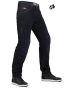 Мотоджинсы в отличии от гражданских могут будут выполнены из джинсы с нитью кевлара/арамида/кордуры или со вставками из этих тканей в местах истирания. Крой мотоштанов предусматривает особенности посадки на мотоцикле (вентиляция, стрейч вставки, длина, высокая полка поясницы, глубина карманов, ширина штаницы для использования наколенников).