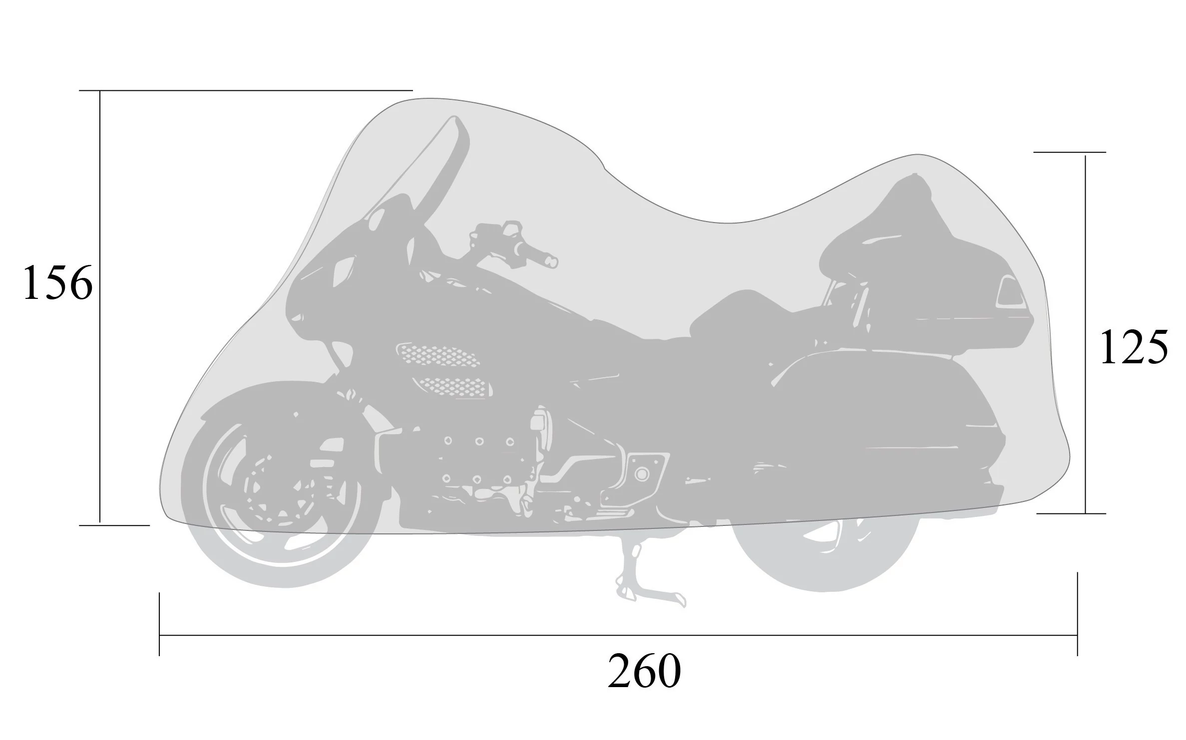 Чехол подойдет для Honda Goldwing GL1800 – 260/156/125 см.