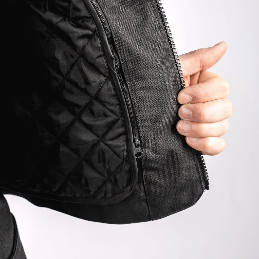 Если ваша мотокуртка оснащена защитными вставками D3O, не скручивайте ее сверх меры, не кладите сверху тяжелые предметы. В условиях низких температурах материал становится жестче и при попытке согнуть, разогнуть или другой деформации с применением силы, защитные вставки могут треснуть. Перед применением ознакомьтесь с инструкцией.