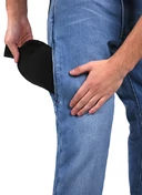 Преимущественно мотоджинсы поставляются с защитными вставками на коленях и/или бедрах.