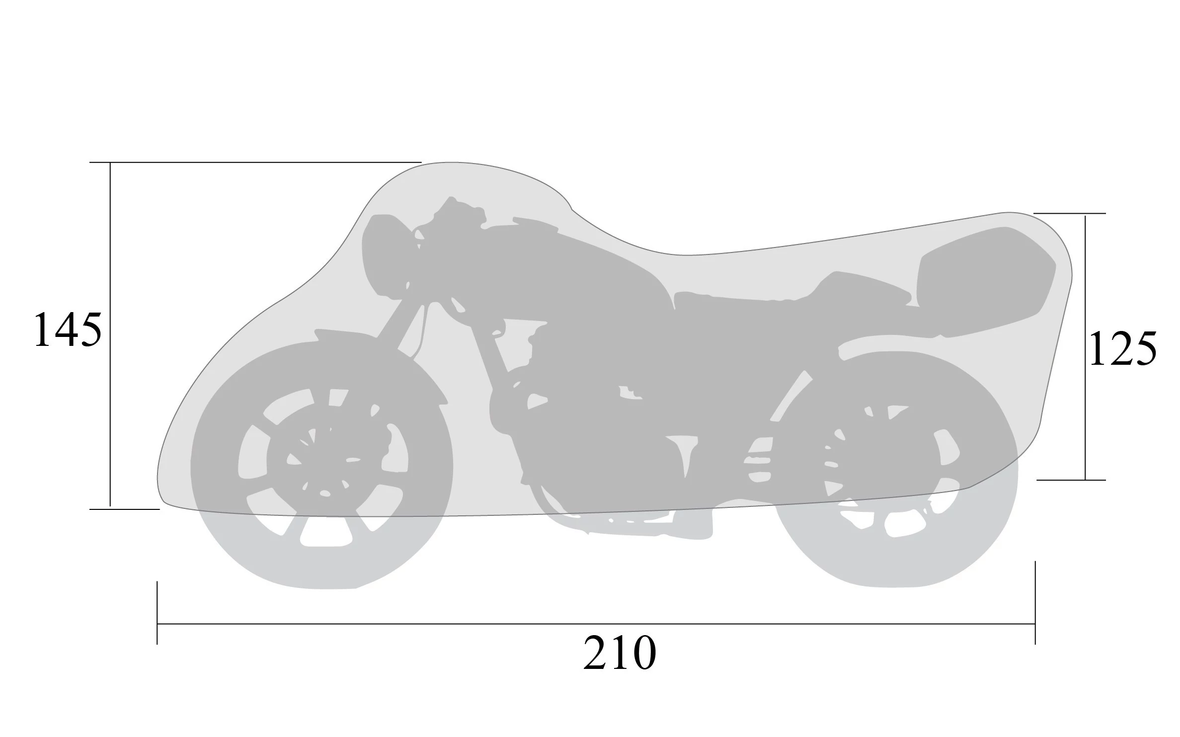 Чехол подойдет для классики и спортивных мотоциклов с кофром – 210/145/125 см.